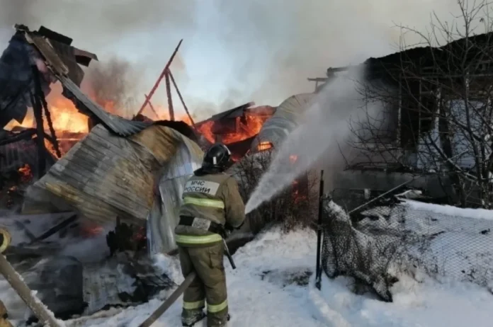 Наиболее масштабное возгорание произошло в поселке Красногвардейский Артемовского района. На улице Ленина огонь затронул жилой комплекс общей площадью 127 квадратных метров, включающий частный дом, гараж и банные помещения.