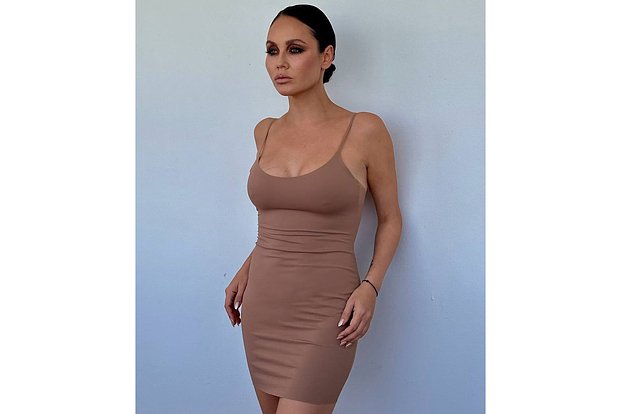 На фото 39-летняя звезда продемонстрировала облегающее мини-платье бежевого оттенка с тонкими бретелями, отказавшись от классического нижнего белья. Образ дополнили аккуратный низкий пучок и макияж в технике «смоки айс», подчеркивающий выразительность взгляда.